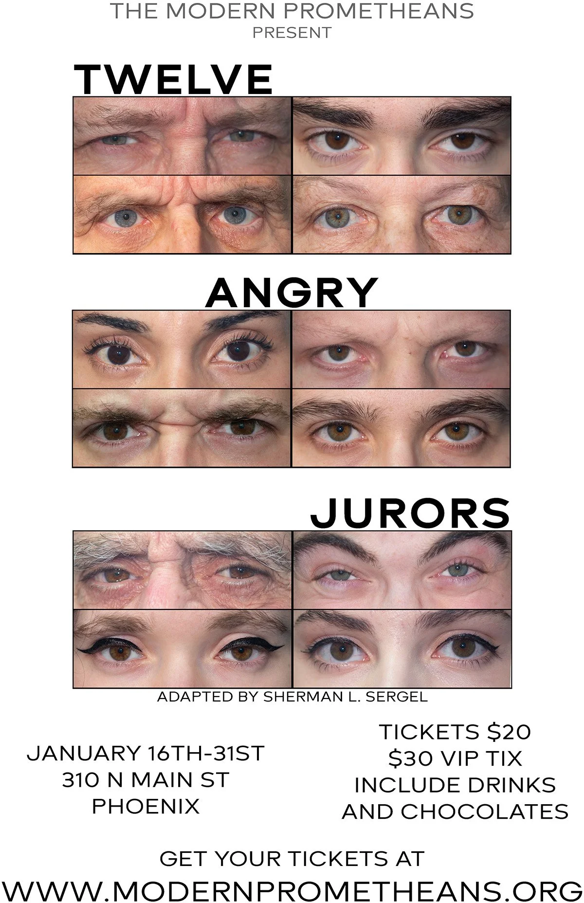 The Modern Prometheans present Twelve Angry Jurors, adapted by Sherman L. Sergel from the teleplay by Reginald Rose.